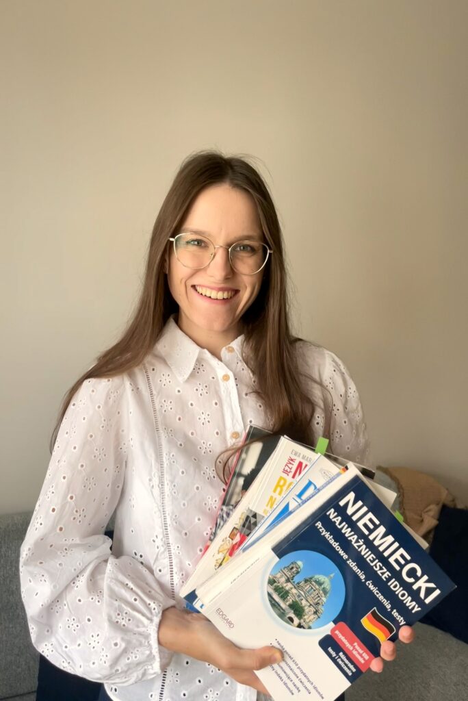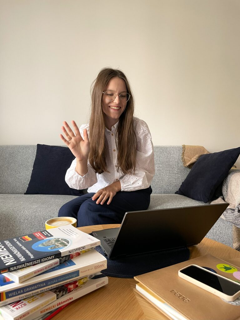 Moja przygoda z nauczaniem rozpoczęła się na studiach. Po zajęciach na uczelni udzielałam korepetycji dzieciom i młodzieży. Uwielbiałam towarzyszyć swoim uczniom w rozwoju językowym i obserwować ich postępy, ale co najważniejsze – pokazywać, że niemiecki to logiczny i poukładany język i da się go nauczyć! Wtedy zrozumiałam też, że to właśnie rozgadywanie moich kursantów i przekazywanie im wiedzy sprawia mi ogromną przyjemność i satysfakcję.